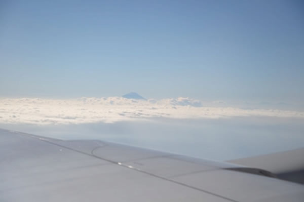 搭乗後から規制緩和で撮影できる離陸までの空港内の写真や飛行機の写真、離陸後の地上風景、上空からの富士山など。